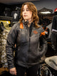 An enthusiast essential. This leather motorcycle jacket is designed with CE-approved body armour (elbows and shoulders), back armour pockets, reflective detailing, and a pants-connecting option. Also features a narrower chest area fit that’s ideal for a more aggressive riding position. Stylishly finished with just the right punch of colour and graphics. Pairs perfectly with our Brawler Full-Finger Glove and Brawler Carbon Fiber X09-Full Face with Sun Shield Helmet for maximum riding comfort. Get all the functional details below...