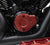 Curved spokes machined within Redline Collection powertrain covers convey aggressive speed, the perfect accessory for your high-performance bike. Crafted in forged billet aluminum with a durable bright red anodized finish for an eye-catching color contrast.