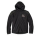 Well-worn style intersects with comfort and protection on our H-D® Passing Link III Leather Jacket. Crafted from a heavyweight cut of cow leather that’s distressed for a worn-in look and feel. This men’s motorcycle jacket is loaded with rider-friendly features like zippered venting to welcome airflow, a Mandarin collar with a retractable snap-tab, and reflective material to enhance visibility. It includes D3O® Ghost™ armor at the shoulders and elbows for impact protection, plus it’s tested and certified to meet abrasion, tear, and seam strength requirements. Finished with channel stitching detail and embroidered leather patch graphics on both sides for a timeless H-D look. School yourself on all the specs, then snag yours ASAP.